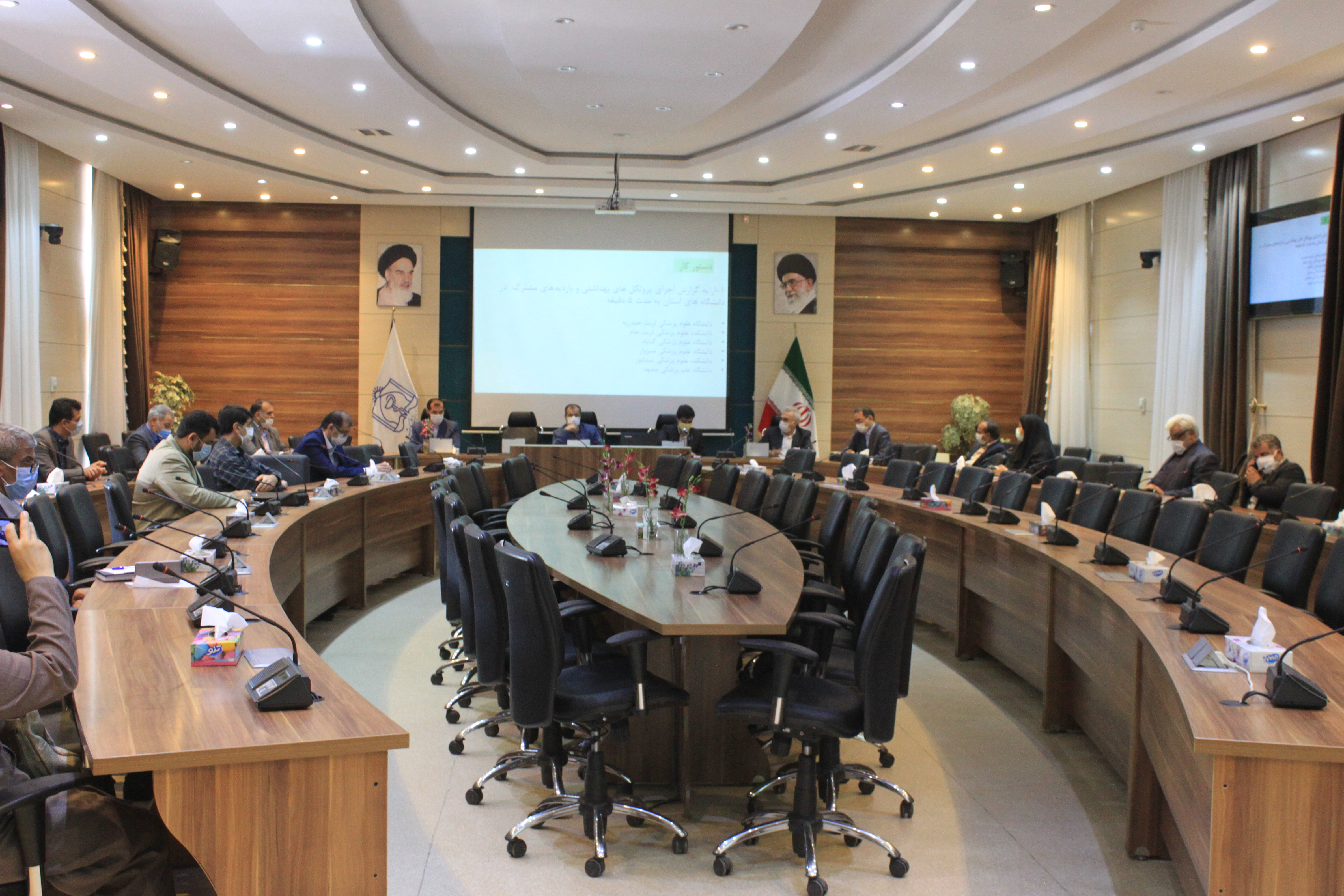 جلسه کارگروه صیانت از حقوق مردم در سلامت و امنیت غذایی استان در مورخ 26/5/99 در محل سالن شهید دلیری مرکز بهداشت استان و با حضور دکتر سید حسین لرگانی، معاون قضایی و رئیس دادگاهای کیفری، دکتر فرزاد بهشتی توندری، دادیار حوزه پیشگیری از وقوع جرم دادستان مرکز، روسا و مدیران سازمان ها و دستگاه های اجرایی، معاونین و نمایندگان دانشگاه های علوم پزشکی: تربت حیدریه- تربت جام – سبزوار- گناباد - نیشابور و مشهد برگزار گردید. دستور کار جلسه کارگروه: - گزارش اقدامات پیشگیرانه و نظارت بر پروتکل های بهداشتی مقابله با کووید 19 توسط دانشکده/ دانشگاه های علوم پزشکی استان - تعیین اولویت های برنامه های کمیته در سال 99 |